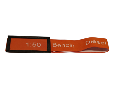 Das Beschriftungsband bietet hier eine langlebige und zuverlässige Lösung: Die wichtigsten Kraftstoffe wie 1:50, Benzin und Diesel sind fest aufgestickt und damit dauerhaft lesbar – selbst unter anspruchsvollen Bedingungen.